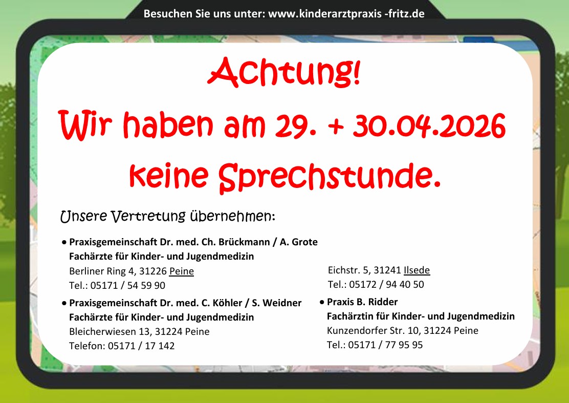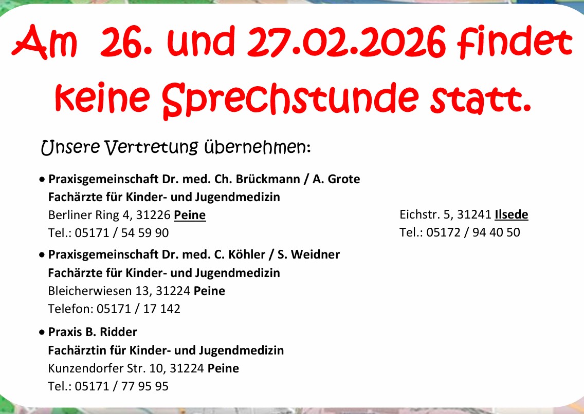an folgenden Tagen findet keine Sprechstunde statt: