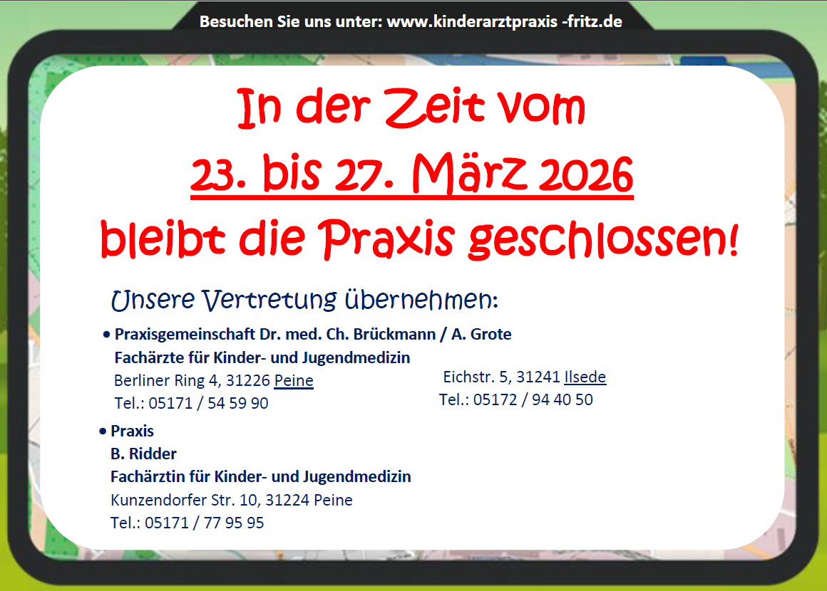 Aufgrund der Größe unserer Warte- und Behandlungszimmer möchten wir Sie bitten, dass nur der Patient mit maximal zwei Begleitpersonen in die Praxis kommt.